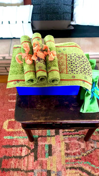 • The contemporary table lime green 4 placemats and 4 cotton napkins set has an exquisite handcrafted boutique style thick linen quality.